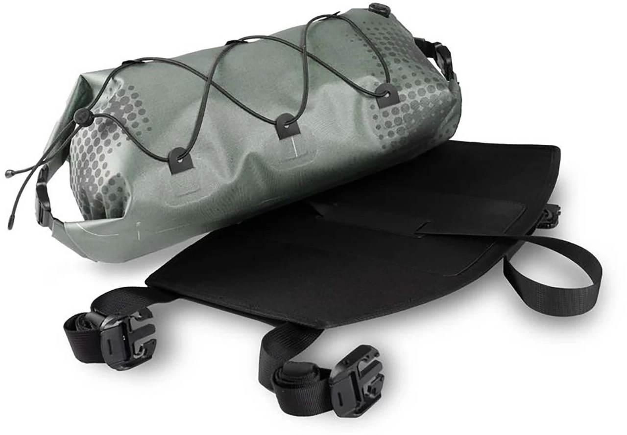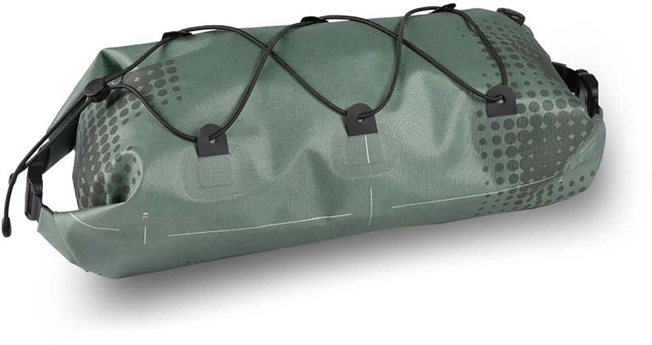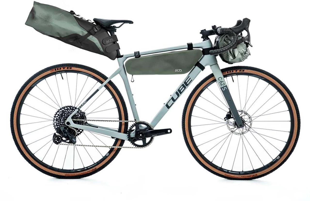 Vom Micro-Adventure bis zur längeren Bikepacking-Tour: Die neue ACID Lenkertasche PACK PRO 9 wurde mit erfahrenen Bikepackern entwickelt. Das zweiteilige System aus Harness und wasserdichter, verschweißter Drybag ist funktionell konzipiert. Dank des flexiblen MOLLE-Systems lässt sich der Harness sicher an jedem Lenker anbringen. Die robuste, verschweißte Dry Bag wird einfach in den Harness gesteckt, mit zwei Schnellverschlüssen fixiert und kann per Strap auch in der Breite komprimiert werden. Ein weiteres Feature: Der Tascheninhalt lässt sich durch ein integriertes Entlüftungsventil noch weiter komprimieren. Reflektierende Elemente an beiden Teilen erhöhen die Sichtbarkeit im Straßenverkehr. Auch ein Frontlicht lässt sich problemlos anbringen.