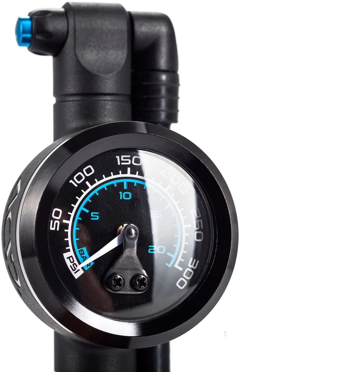 Dämpferpumpe mit 2-stufigem Schrader-Ventilkopf für sicheres Abschrauben ohne Luftverlust. Dank ergonomischem Natural Fit Griff liegt die Pumpe perfekt in der Hand und ermöglicht mit dem Präzisionsmanometer und Luftablass-Ventil eine perfekt Fahrwerkseinstellung.