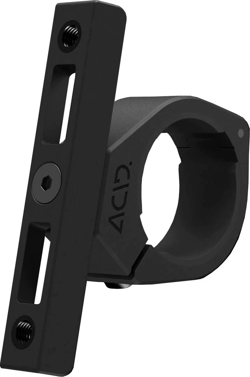 Falls alle Flaschenhalter Befestigungen am Rahmen belegt sind, bietet der ACID Flaschenhalter Adapter Lenker eine Alternative hierfür. Dank unterschiedlicher Einleger passt er auf Durchmesser von 27,4 – 35,0 mm. Den Adapter kann man durch das Lösen einer Schraube auch an der Sattelstütze befestigen.