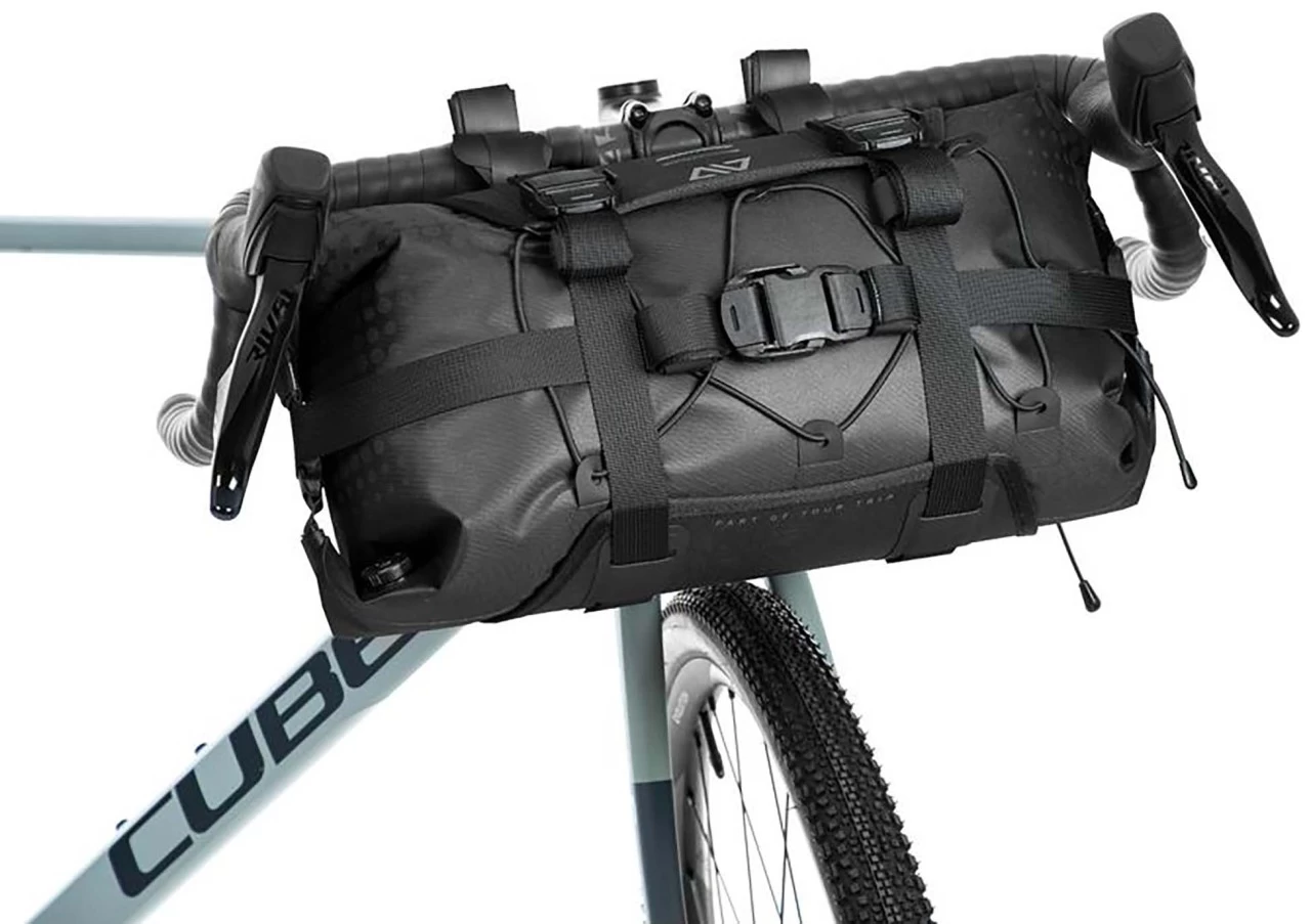 Die neue ACID Lenkertasche PACK PRO 15 – mit erfahrenen Bikepackern entwickelt – ist die größere Version der PACK PRO 9, passt aber in den gleichen Harness. Das zweiteilige System aus Harness und wasserdichter, verschweißter Drybag ist funktionell konzipiert. Dank des flexiblen MOLLE-Systems lässt sich der Harness sicher und wackelfrei an jedem Lenker anbringen. Die robuste, verschweißte Dry Bag wird einfach in den Harness gesteckt, mit zwei Schnellverschlüssen fixiert und kann per Strap auch in der Breite komprimiert werden. Ein weiteres Feature: Der Tascheninhalt lässt sich durch ein integriertes Entlüftungsventil noch weiter komprimieren. Reflektierende Elemente an beiden Teilen erhöhen die Sichtbarkeit im Straßenverkehr. Auch ein Frontlicht lässt sich problemlos anbringen.
