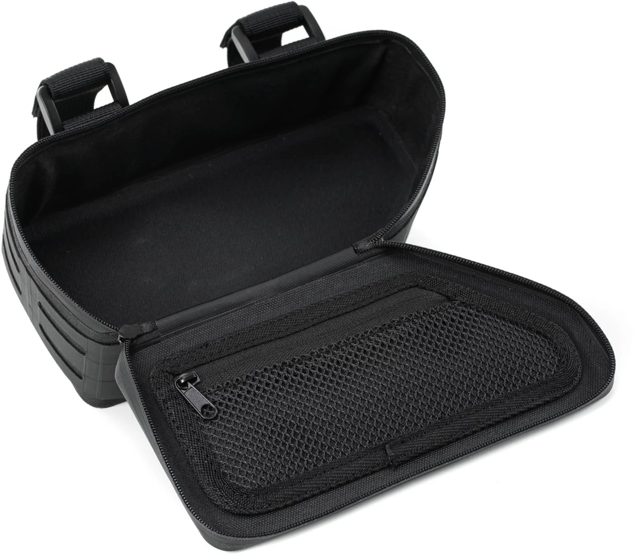Die in der FRAMEBAG FRONT PRO 1 integrierte Innentasche mit Reißverschluss verschafft dir mehr Ordnung in deiner Fahrradtasche. Durch die individuell anpassbaren Straps ist dir die Möglichkeit gegeben, deine Tasche flexibel an deinem Rahmen anzubringen. Das reflektierende Logo sorgt für eine gute Sichtbarkeit.