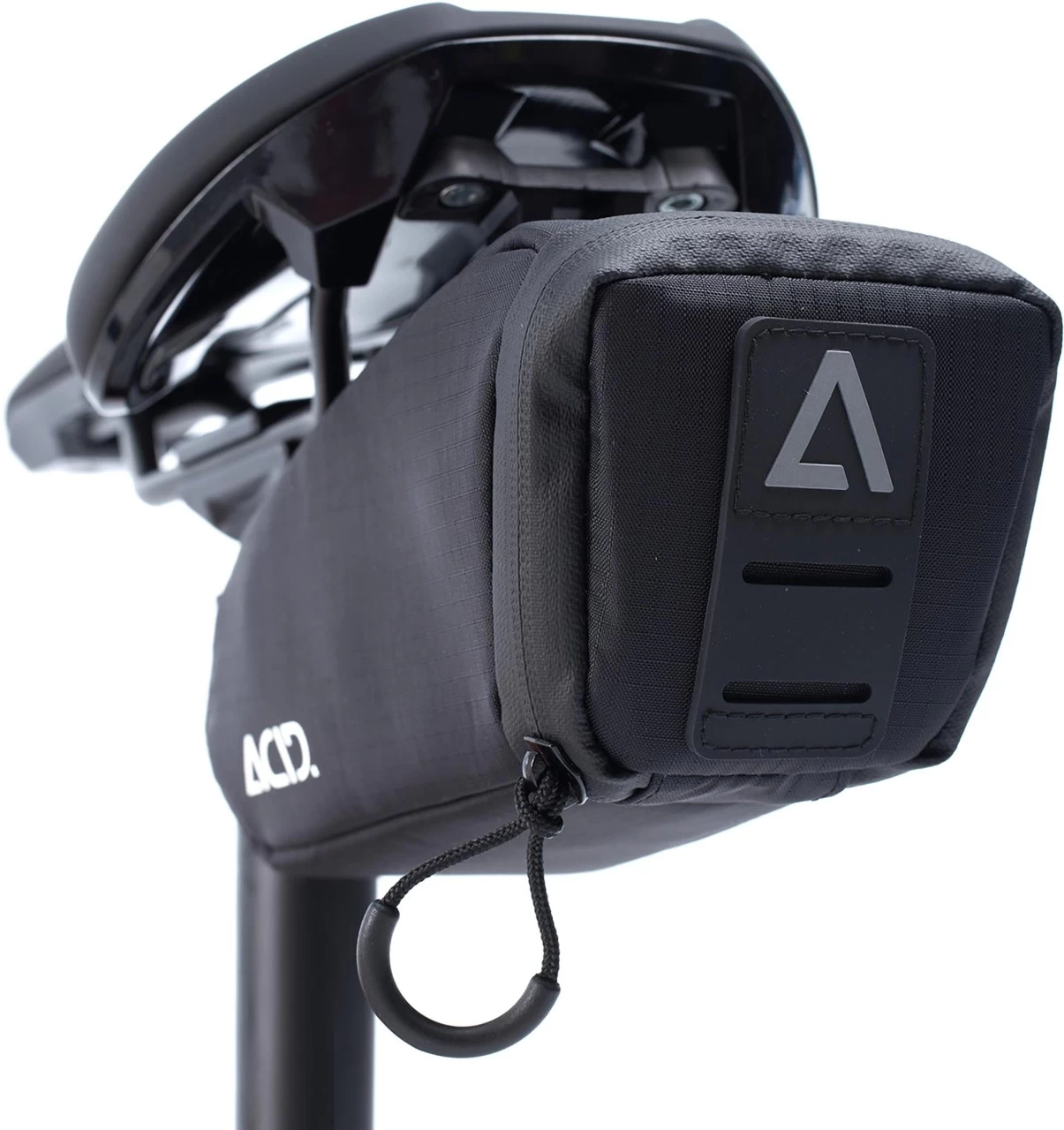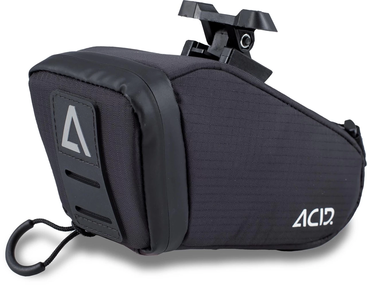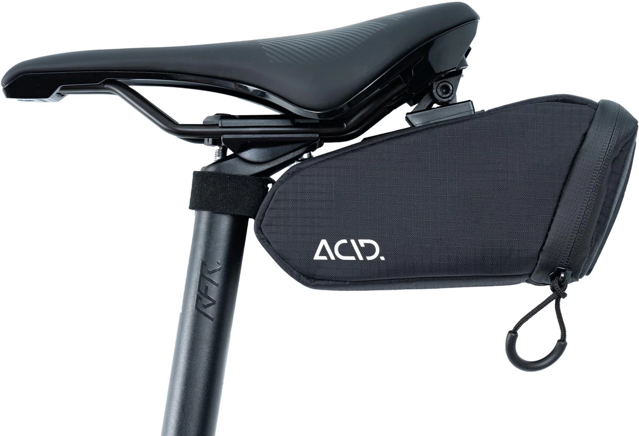 Pack das Wichtigste ein. Die ACID CLICK M Satteltasche hält deine Habseligkeiten sicher unter dem Sattel verstaut, wo sie nicht im Weg stehen. Das kompakte Design, der wasserabweisende Reißverschluss und der Rücklichthalter sind typische Details, die eine Satteltasche von ACID besonders machen.