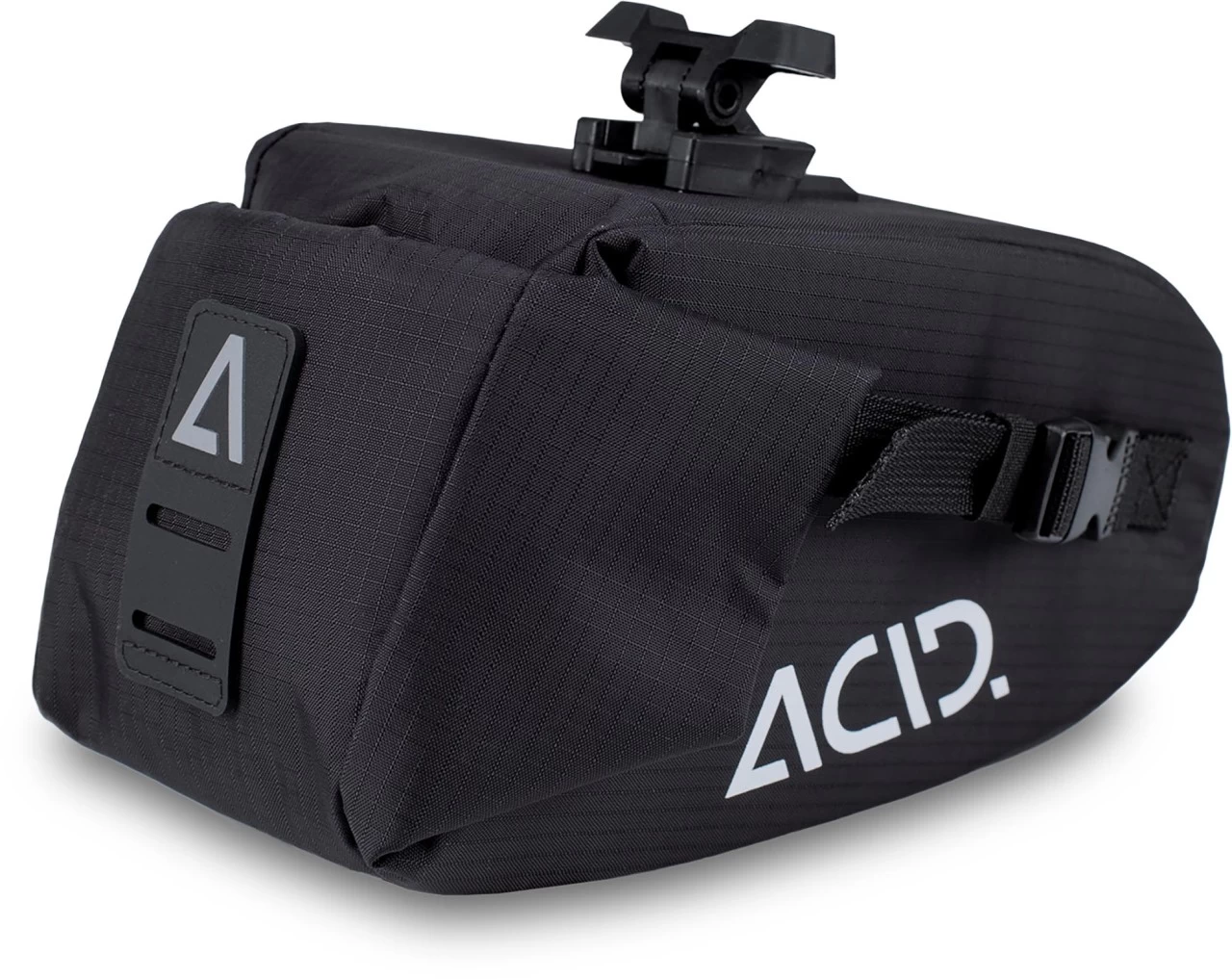 Pack das Wichtigste ein. Die ACID CLICK XL Satteltasche hält deine Habseligkeiten sicher unter dem Sattel verstaut, wo sie nicht im Weg stehen. Das kompakte Design, der wasserabweisende Reißverschluss und der Rücklichthalter sind typische Details, die eine Satteltasche von ACID besonders machen.