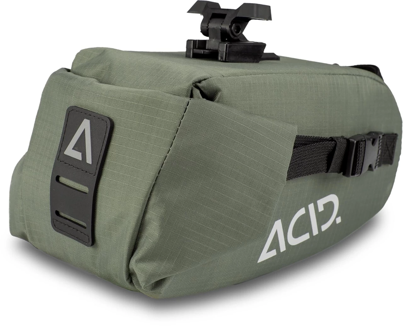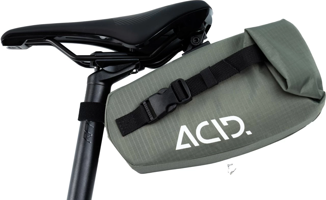 Pack das Wichtigste ein. Die ACID CLICK XL Satteltasche hält deine Habseligkeiten sicher unter dem Sattel verstaut, wo sie nicht im Weg stehen. Das kompakte Design, der wasserabweisende Reißverschluss und der Rücklichthalter sind typische Details, die eine Satteltasche von ACID besonders machen.