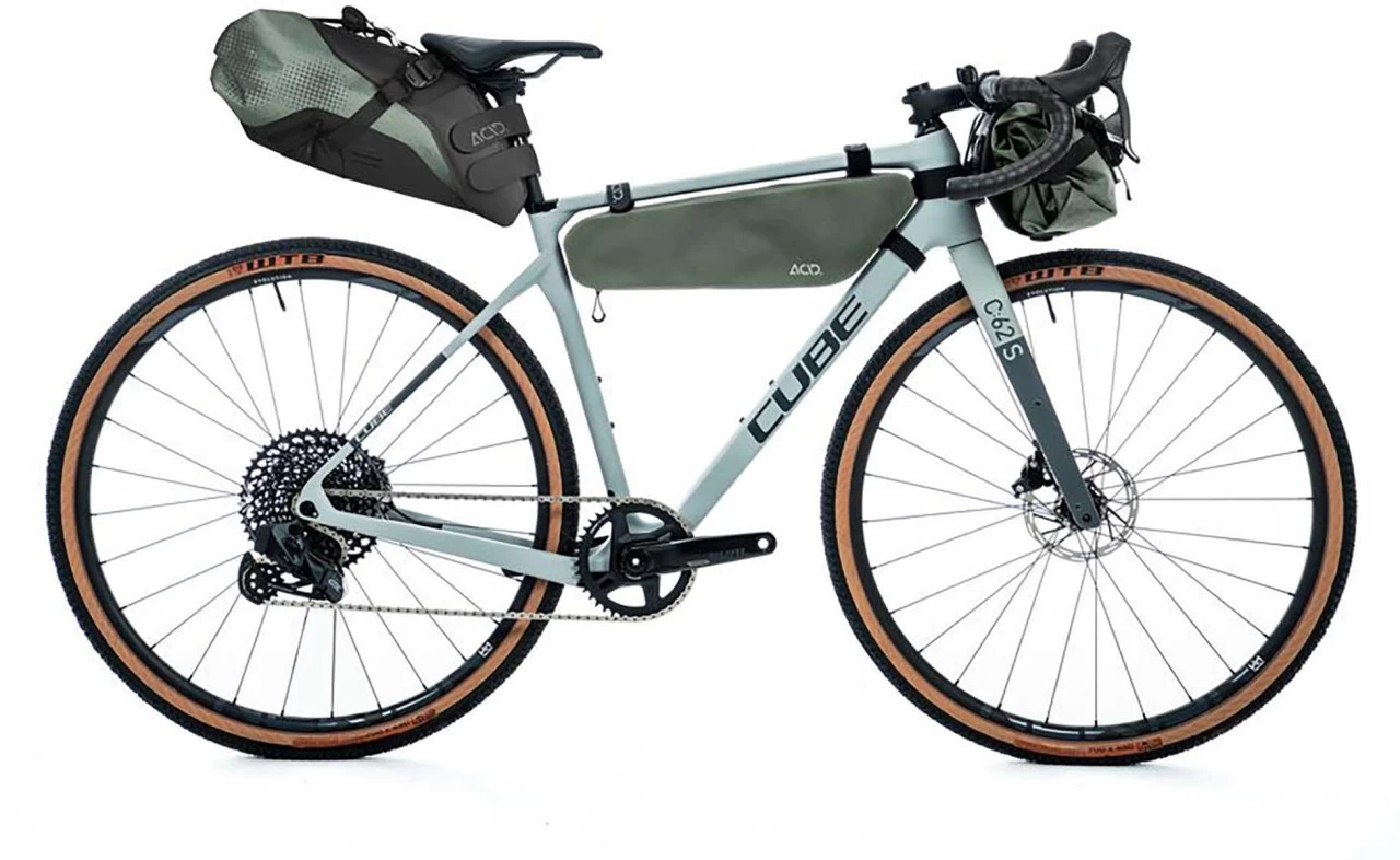 Vom Micro-Adventure bis zur längeren Bikepacking-Tour: Das ACID PACK PRO 11 wurde mit erfahrenen Bikepackern entwickelt. Das zweiteilige System aus Harness und wasserdichter, verschweißter Drybag ist funktionell konzipiert. Dank des flexiblen MOLLE-Systems lässt sich der Harness sicher an Rail und Sattelstütze anbringen und kann auch am Rad verbleiben. Die robuste Dry Bag wird in den Harness gesteckt, fixiert und ist abends oder zwischendurch schnell wieder entnommen. Ein weiteres Feature: Der Tascheninhalt lässt sich durch ein integriertes Entlüftungsventil noch weiter komprimieren. Reflektierende Elemente an beiden Teilen erhöhen die Sichtbarkeit im Straßenverkehr. Auch ein Rücklicht lässt sich problemlos integrieren.