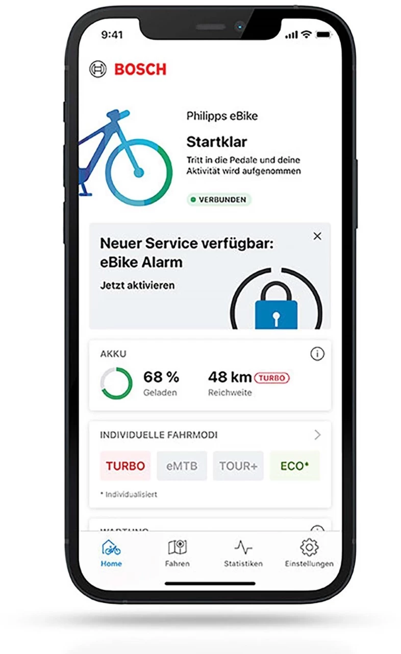 Die App verbindet dich mit deinem eBike – und dein eBike mit der digitalen Welt. Über die App steuerst du alle Funktionen des smarten Systems, das die Drive Unit, den Akku und die Bedieneinheit vernetzt. Sie ermöglicht dir, das eBike genau an deine Wünsche anzupassen, zu erweitern und aktuell zu halten: Du lädst einfach neue Features und Services herunter. Updates für dein eBike installierst du bequem via Bluetooth. Dadurch bleibt dein eBike auf dem neuesten Stand und wird mit neuen Funktionen kontinuierlich erweitert.