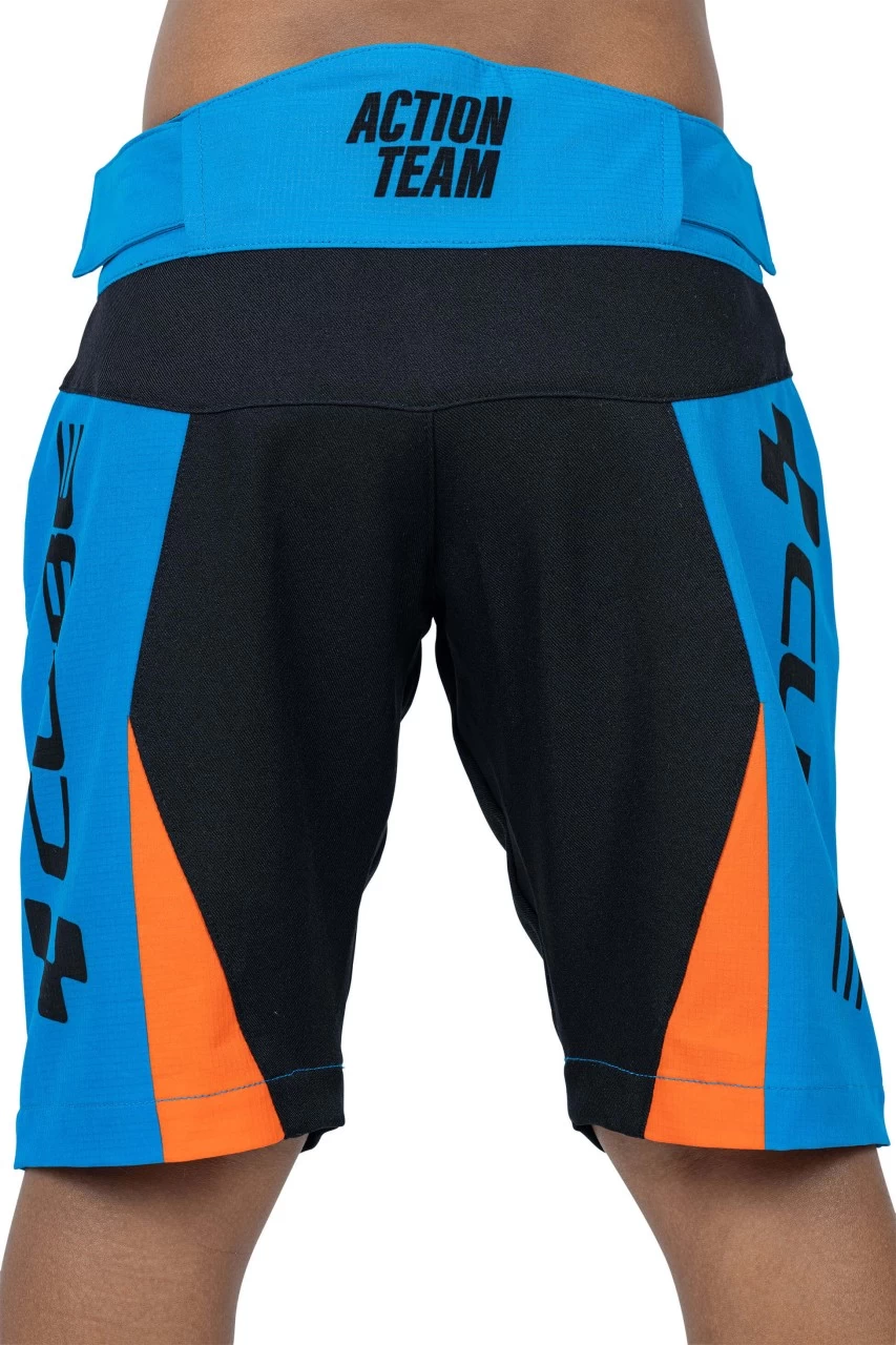 Aussehen wie ein echter Teamfahrer! Das leichte Material und der weitenregulierbare Bund der Baggy Shorts im Actionteam Design machen sie perfekt für coole Biker.