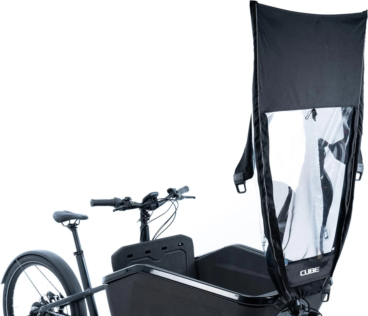 Echte Biker scheuen kein schlechtes Wetter – schon gar nicht, wenn sie mit dem CUBE Cargo unterwegs sind! Unser wasserabweisendes Regenverdeck schützt Ladung oder kleine Passagiere zuverlässig vor Nässe, das Fliegengitter hält Insekten draußen und das PVC Fenster lässt genug Licht in den Innenraum (beide aufrollbar). Die Metallklammer mit Schraubsatz und die Fiberglasstäbe mit Steckverbinder sind funktional und stabil.