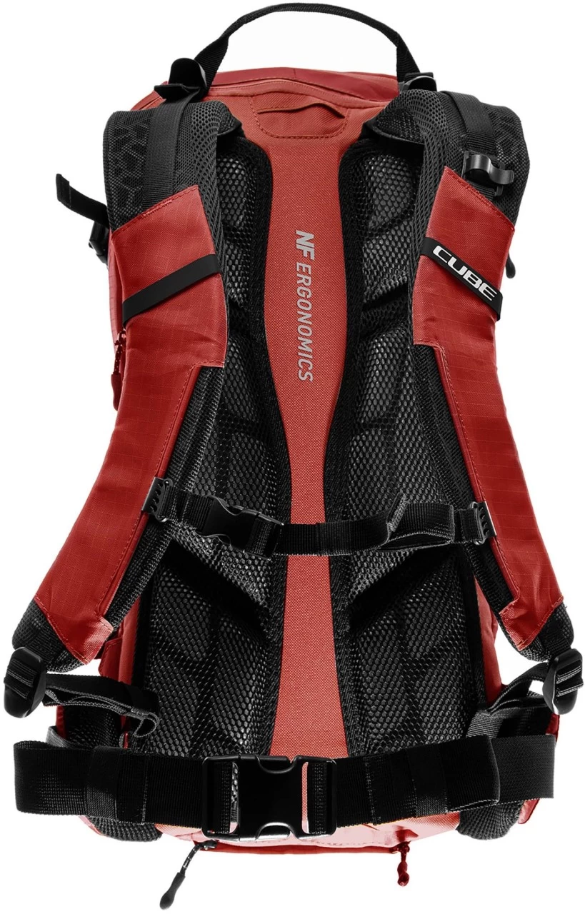 Der CUBE ATX 22 bietet Platz für alles, was auf ausgedehnten Touren mitmuss. Dank dem von CUBE entwickelten Natural Fit Rückensystem und gepolsterten Hüftgurt sitzt der Rucksack optimal am Rücken. Das Gewicht wird angenehm verteilt, der Rücken ist gut polstert und belüftet. Dank MOLLE-System lässt sich auch die CUBE GEAR BAG 1 mit Klettbändern sicher am Rucksack fixieren. Mit den seitlich angebrachten Kompressionsriemen hast du zusätzlich die Möglichkeit, deine Jacke oder Protektoren zu befestigen. Dank sinnvoller Fächeraufteilung, extra Werkzeugfach und Smartphone-Seitenfach sind die wichtigsten Sachen schnell griffbereit. Plus Raincover und Trinkblasenfach … am Rucksack wird die Tour nicht scheitern..