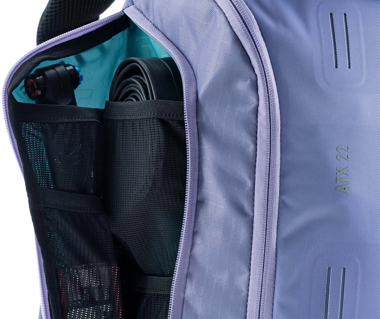 Der CUBE ATX 22 bietet Platz für alles, was auf ausgedehnten Touren mitmuss. Dank dem von CUBE entwickelten Natural Fit Rückensystem und gepolsterten Hüftgurt sitzt der Rucksack optimal am Rücken. Das Gewicht wird angenehm verteilt, der Rücken ist gut polstert und belüftet. Dank MOLLE-System lässt sich auch die CUBE GEAR BAG 1 mit Klettbändern sicher am Rucksack fixieren. Mit den seitlich angebrachten Kompressionsriemen hast du zusätzlich die Möglichkeit, deine Jacke oder Protektoren zu befestigen. Dank sinnvoller Fächeraufteilung, extra Werkzeugfach und Smartphone-Seitenfach sind die wichtigsten Sachen schnell griffbereit. Plus Raincover und Trinkblasenfach … am Rucksack wird die Tour nicht scheitern.