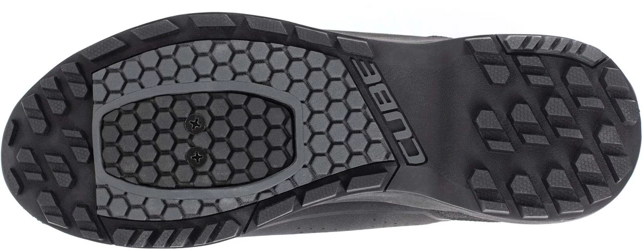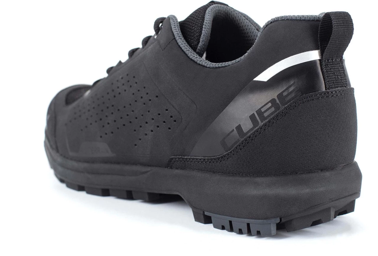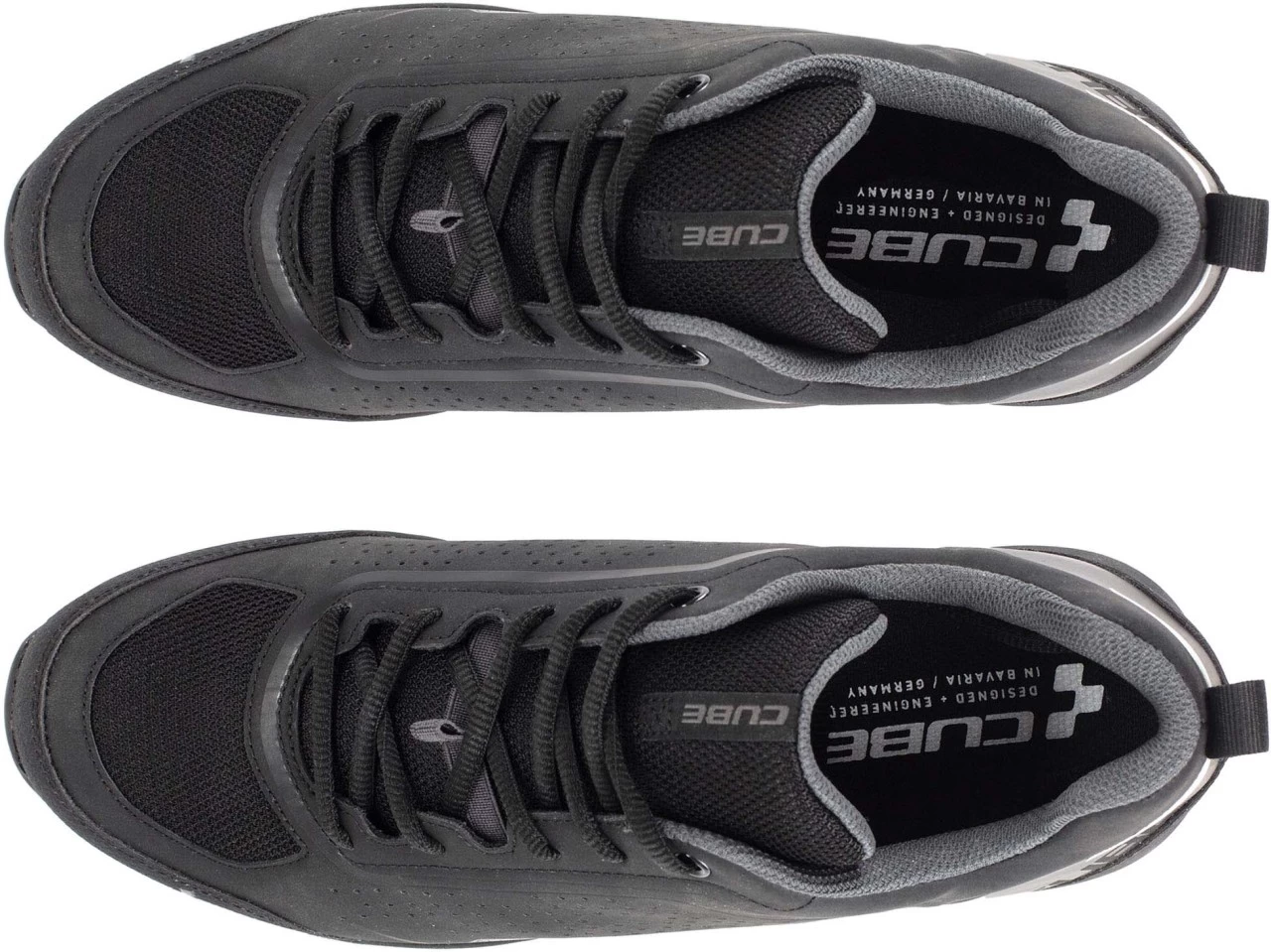 Stylischer All Terrain Schuh mit praktischem Schnürverschluss und toller Passform dank ergonomisch optimierten CUBE Natural Fit Leisten und Innensohle. Clevere Features wie die Einstiegshilfe und der Laceholder machen das Leben leichter, während die griffige Gummi-Außensohle für Klickpedale auch beim Gehen tollen Halt gibt. Das robuste Obermaterial und die verstärkte Zehenkappe schützen den Fuß, dank Luftlöcher und Mesh-Konstruktion bleibt selbiger aber immer angenehm belüftet. Das reflektierende Fersenelement schenkt zusätzliche Sicherheit durch mehr Sichtbarkeit bei schlechten Lichtverhältnissen.