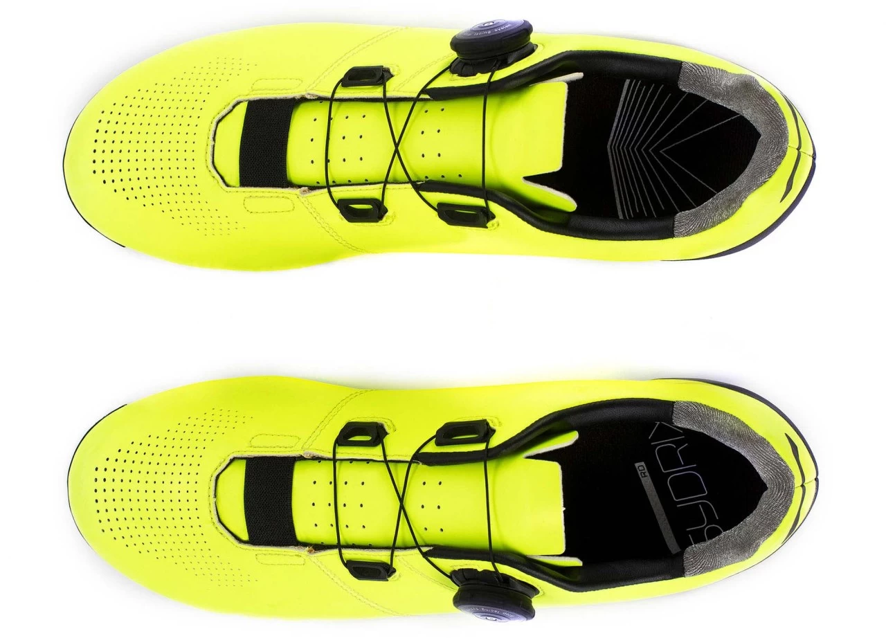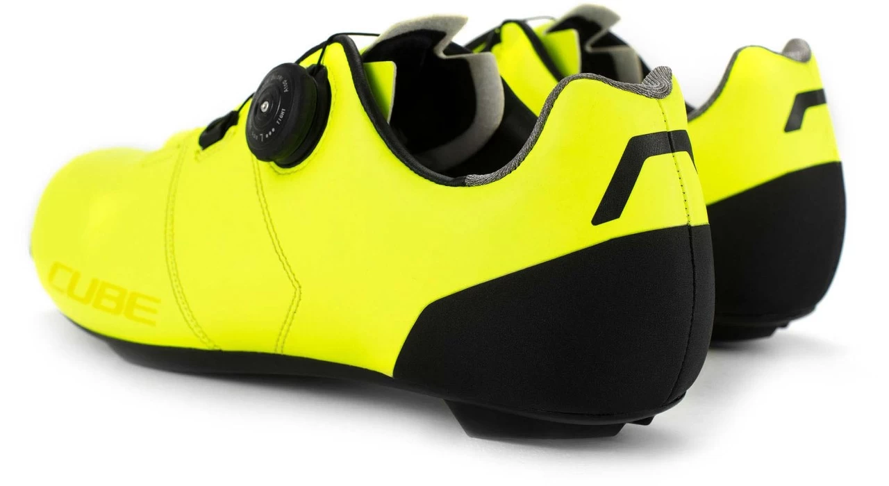 Steifer Rennradschuh mit Glasfasersohle und Drehverschluss, der dem Fuß durch homogenes Umschließen hervorragenden Halt gibt. Dazu trägt auch das CUBE Anti-Slip System bei, das die Ferse an Ort und Stelle hält – so wird deine Power wirklich eins zu eins auf die Pedale übertragen. Weitere smarte Details: die verstärkte Zehenkappe, das Zungenschild für eine optimale Druckverteilung und die austauschbare Fersen-Stollen. Das Obermaterial ist schmutzabweisend und somit pflegeleicht, während die atmungsaktive Zunge für eine tolle Belüftung sorgt. Stylisches asymmetrisches Design und mehr Sicherheit durch reflektierende Elemente im Fersenbereich.