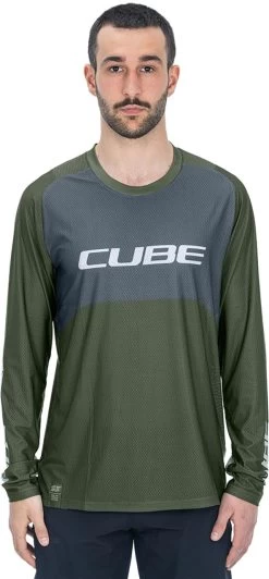 CUBE VERTEX Rundhalstrikot TM Langarm Olive´n´grey