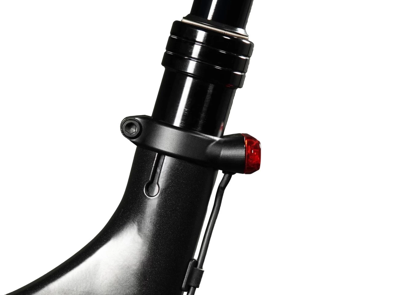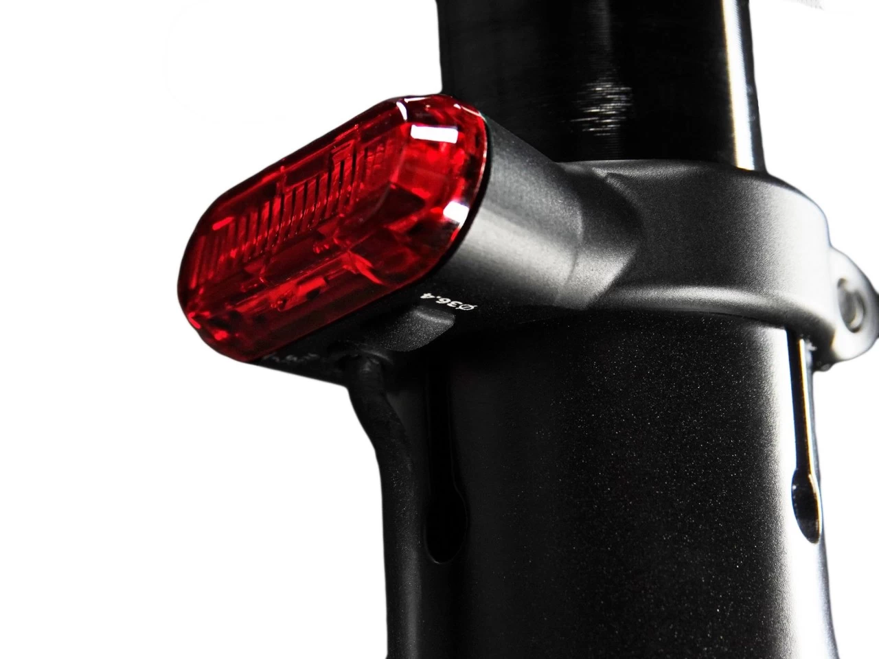 Das C14 Rücklicht von Lupine ist das erste in die Sattelklemme integrierte und StVZO-zugelassene Rücklicht für E-Bikes. Die mit 45 Lumen außergewöhnlich starke Rückleuchte ist vollständig in die Sattelklemme integriert. Es besteht aus schwarz eloxiertem, CNC-gefrästem Aluminium, die Optik aus robustem Polycarbonat. Das C14 ist schlagfest und wasserfest nach IPX6. Dank der neuesten COB Technologie und leistungsfähigen Fresnel-Linsen erreicht das C14 eine rundum hohe Sichtbarkeit bei gleichzeitig reduzierter Blendwirkung. Die spezielle Anordnung der 14 LEDs und ein ausgeklügeltes Linsensystem schaffen zudem eine bis dato unerreicht, homogene Leuchtcharakteristik.