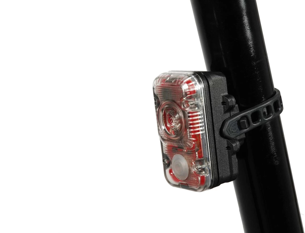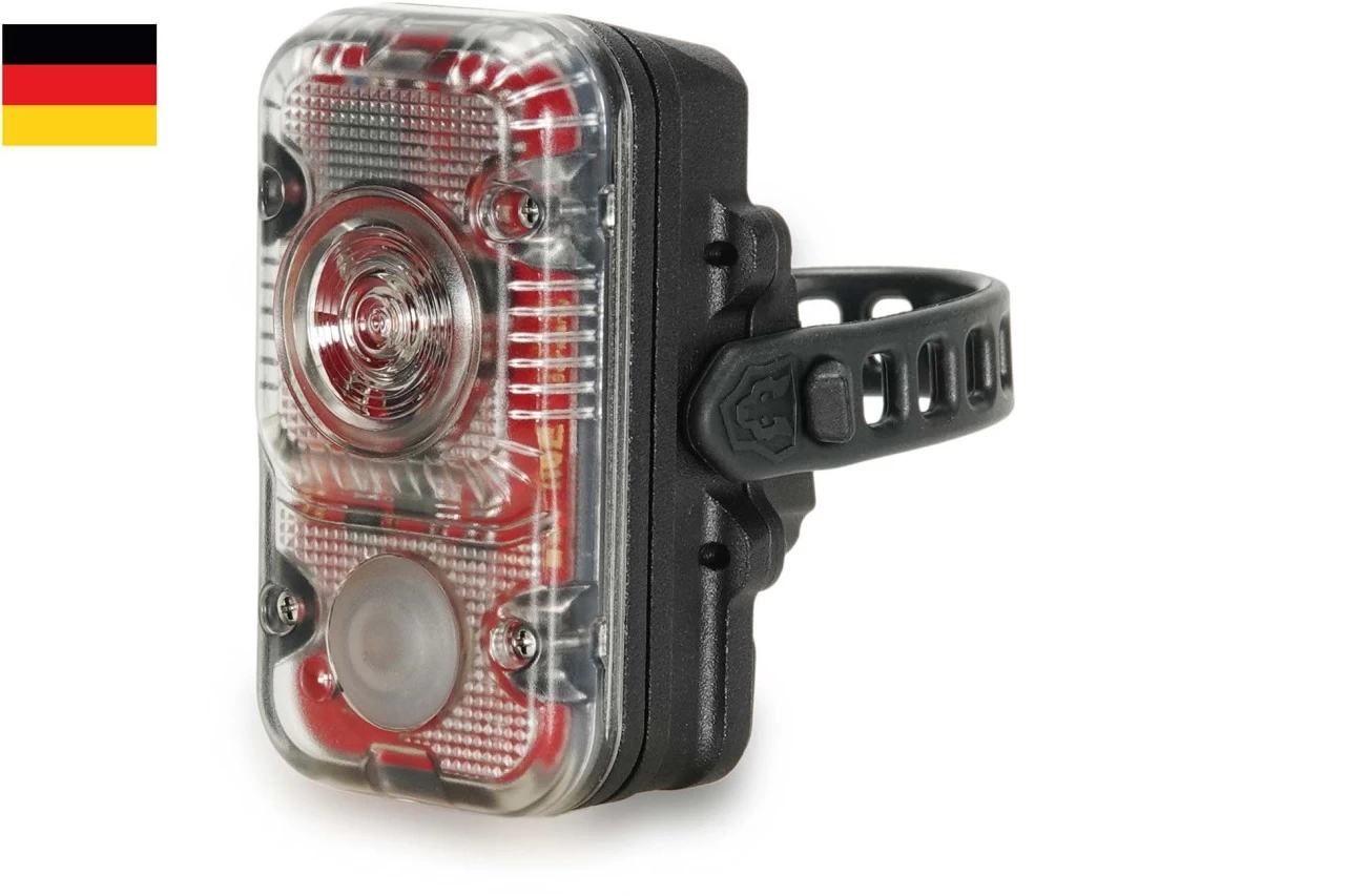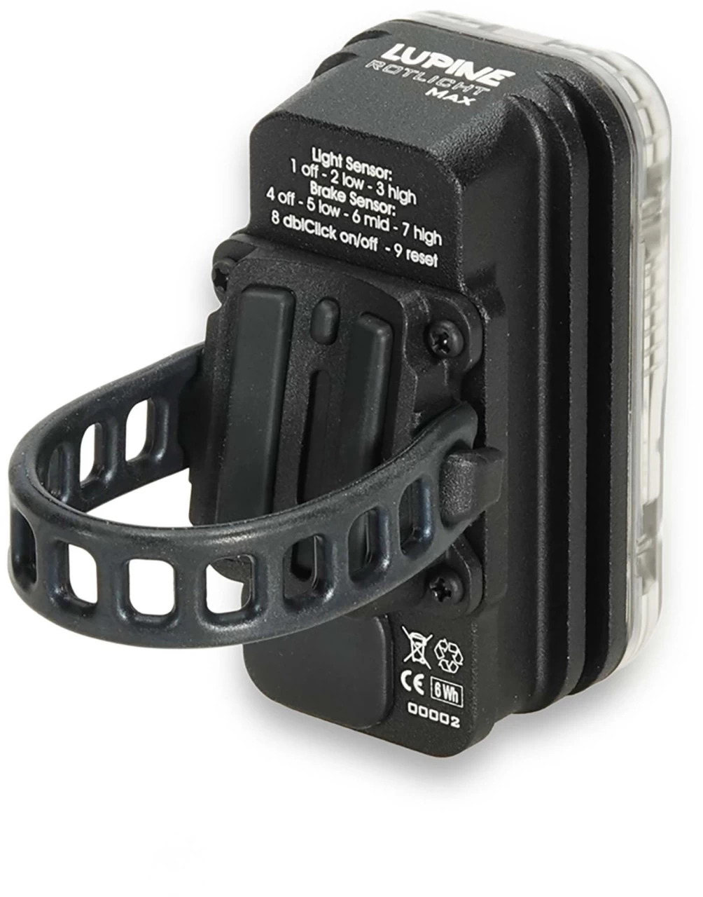 Das Rotlicht MAX StVZO mit Zulassung für den Straßenverkehr. Die Sensortechnik mit Bremslicht sorgt für zusätzliche Sicherheit. Dank des größeren Akkus verfügt das Rotlicht MAX über die doppelte Laufzeit im Gegensatz zu dem normalen Rotlicht. Die wasserdichte Hardware ist für den täglichen Einsatz bei Wind und Regen konzipiert und hält mühelos Temperaturen von -25 bis 70 Grad stand. Geladen wird der, in das Rücklicht integrierte, Akku über eine Micro USB Ladebuchse auf der Rückseite. An der Ladebuchse ist ein Steckerschutz befestigt, so gelangt weder Staub noch Schmutz hinein. Die Anbringung erfolgt mit dem Montageband am Sattelrohr.