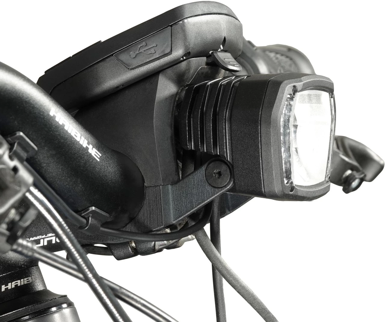 Die neue SL X für E-Bikes zur Montage an Nyon Display. StVZO-zugelassene Fahrradbeleuchtung mit bis zu 1800 Lumen Fernlicht, Abblendlicht und markantem Tagfahrlicht, inkl. Fernbedienungsschelle.