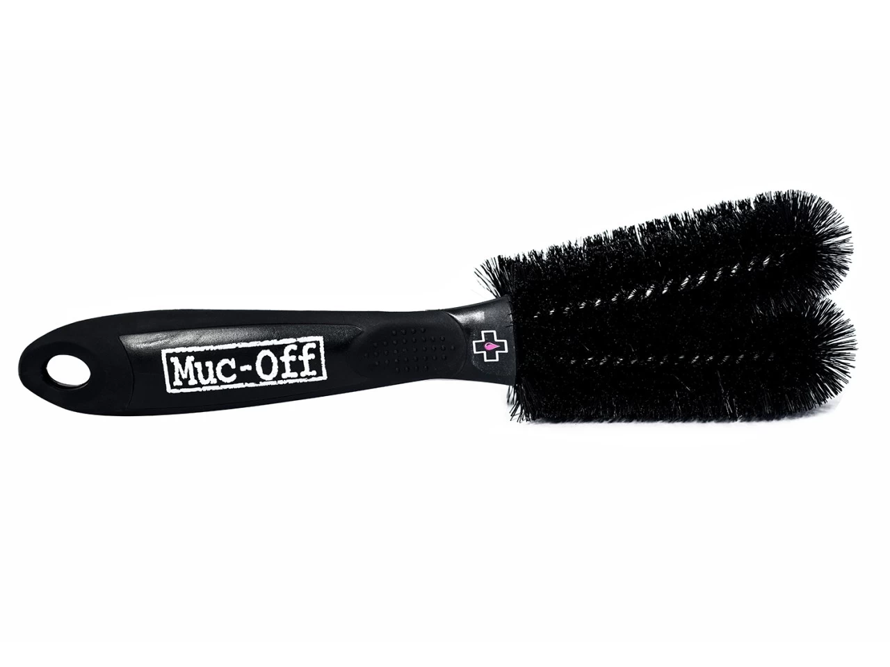 Die zweizinkige Bürste eignet sich hervorragend für schwer zugängliche Bereiche des Fahrrads – ideal für Speichen und Scheiben, Kurbeln und Pedale.