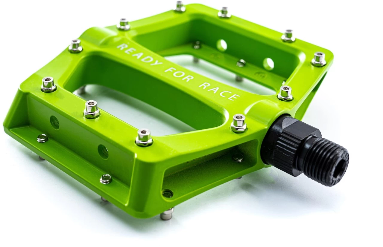 Die aus Aluminium hergestellten Flat Pedals sind massiv gebaut und somit ein langlebiger Begleiter für dein Bike. Die Pedalplattform ist mit austauschbaren Anti-Rutsch-Pins ausgestattet, die dafür sorgen, dass dein Fuß unabhängig von der Geländewahl fest auf den Pedalen steht. Zusätzliche Sicherheit bieten praktische austauschbare Reflektoren. Die RFR Pedale Flat CMPT ist in sechs verschiedenen Farben und zu einem Hammer Preis erhältlich.
