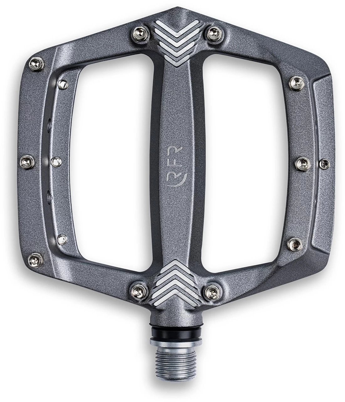 Leichtes Flat-Pedal mit niedrigem Profil, austauschbaren Pins, vier Reflektoren, Industrielagern und LSL-Bushing.