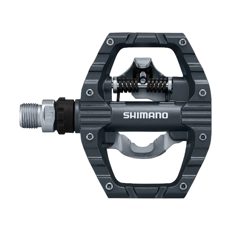 Mit diesen Pedalen von Shimano vereinst du Sportlichkeit und Sicherheit auf deinen Touren quer durchs Land. Der Vorteil dieses Modells ist eine zweiseitig sichere Nutzung dank Clicksystem und Flat Pedal Oberfläche. Bei längerem Fahren sorgt das Clicksystem für einen optimale Kraftübertragung und eine direkte Verbindung mit dem Fahrrad. Eine verstellbare Auslösehärte macht individuelle Ein- und Ausstiegshärten deiner Clickis möglich. Dank der flachen, Pin besetzten Gegenseite der Pedale bist du in Städten und bei häufigem Stop & Go flexibel und hast mit den 8 Pins eine griffige Oberfläche bei Nässe. Ein Pedal für jeden Einsatz, du hast die Wahl – Flat Pedal oder Clickpedale.