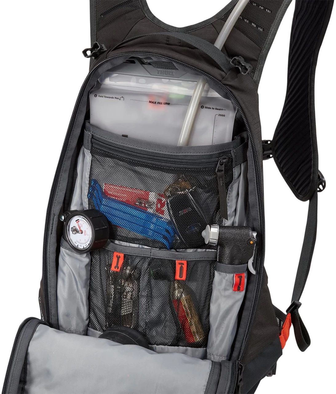 Dieser ultimative 12 L Trinkblasenrucksack für Enduro-Rennen kombiniert den Thule ReTrakt Schlauch, eine sichere Passform und einen Koroyd-Rückenschutz.