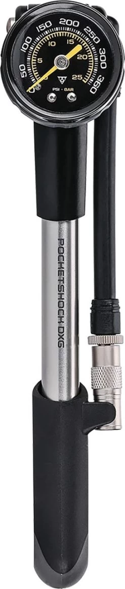 Das Update der präzisen Mini-Dämpferpumpe kommt mit einer großzügigen Anzeige, um Luftdruck bis 360 psi / 24,8 bar sauber abzulesen. Der Luftablassknopf und das Pressure-Rite Shock Ventil erleichtern das Einstellen des exakten Luftdrucks und verhindern effektiv, dass beim Abschrauben von Federelementen Luft entweichen kann. Der flexible Schlauch schont das Ventil während des Aufpumpens. Das kompakte Maß ermöglicht einfaches Verstauen in Trikot- oder Satteltaschen.