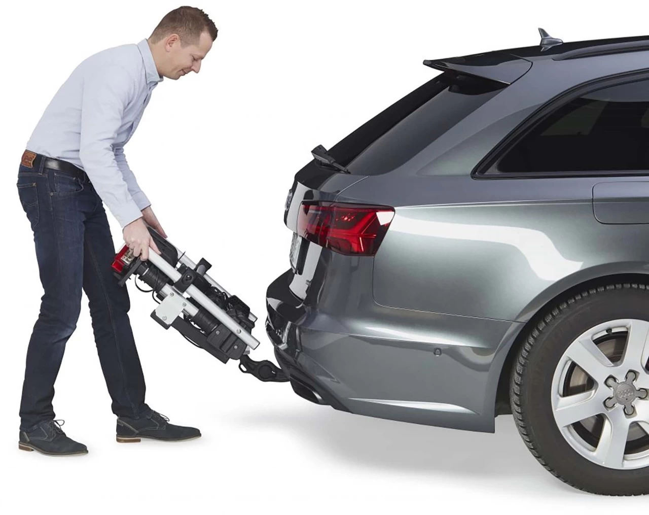 Die i-Serie von Uebler zeichnet sich durch intelligenten Leichtbau und deutsche Ingenieurskunst aus. Einer dieser Träger ist der i31 Fahrradträger, der bis zu 3 Fahrräder transportieren kann und über den hebellosen IQ-Verschluss verfügt. Dies ermöglicht eine besonders bequeme Anbringung des Trägers an der Anhängerkupplung deines Fahrzeugs. Du musst den Träger einfach senkrecht auf den Kugelkopf schieben, ihn dann nach unten klappen und abschließen – fertig! Uebler hat beim i31 Fahrradträger besonderes Augenmerk auf niedriges Gewicht bei hoher Stabilität gelegt. Das Faltkonzept des Trägers wurde überarbeitet, um eine platzsparende Lagerung in besonders kompaktem Maß zu ermöglichen.